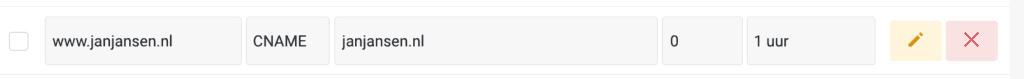 - Name: die Hauptdomain wird standardmäßig eingegeben. Zum Beispiel janjansen.nl oder www.janjansen.nl
