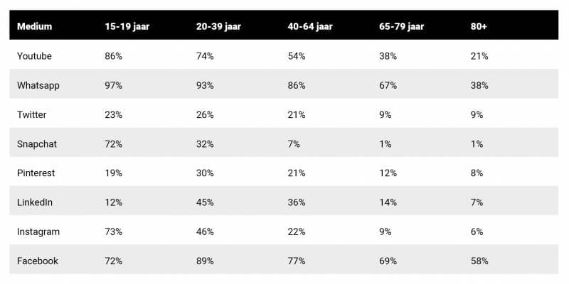 from 2018, social media usage by age group in the Netherlands is as follows: