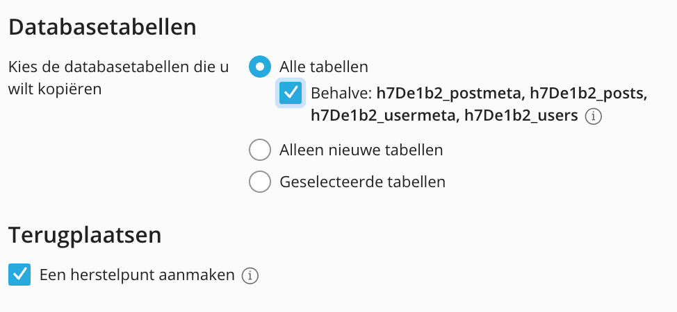 - Do you want to copy just the posts? Then choose ‘Selected tables’ and check the _postmeta and _posts tables