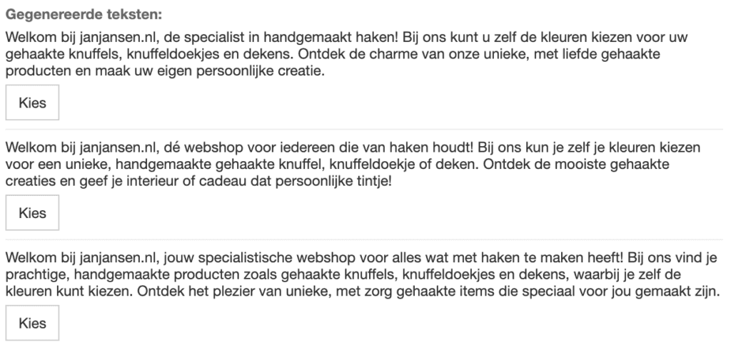Write texts quickly with the handy website builder AI. All you have to do is enter some keywords and the AI will write 3 optional texts for your website.