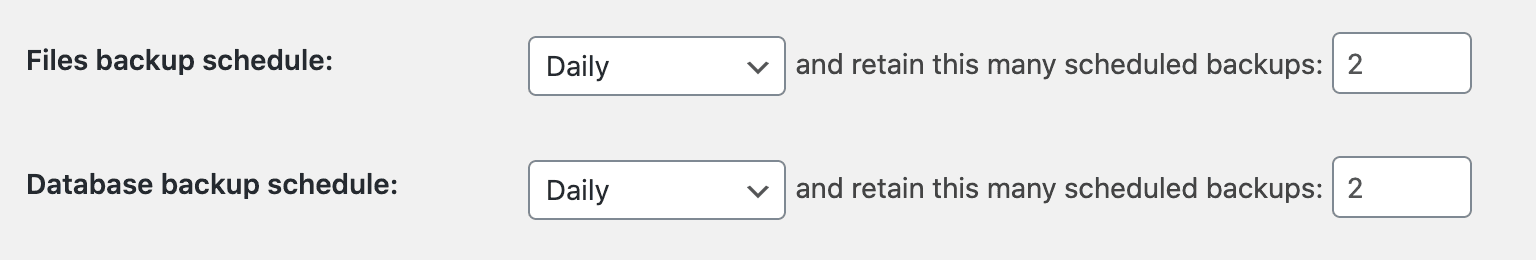 - Database backup schedule: Daily and retain this many scheduled backups: 2