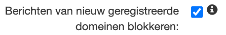 Vink op de Filterinstellingen pagina de optie Berichten van nieuw geregistreerde domeinen blokkeren AAN om berichten van nieuw geregistreerde domeinen te weigeren.
