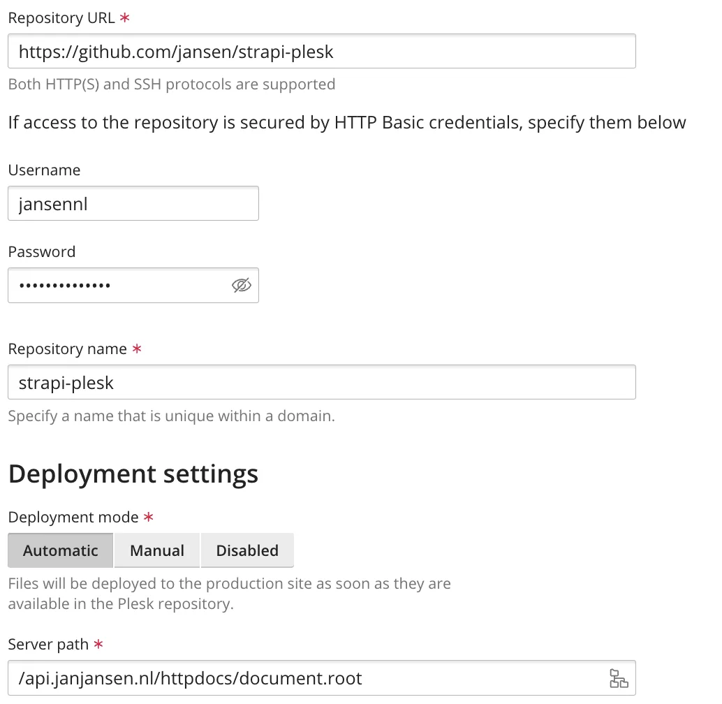 Lees voor een uitgebreide uitleg omtrent het gebruik van Git in Plesk dit artikel.