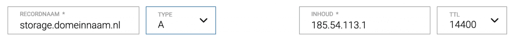 Bijvoorbeeld- Recordnaam: storage.domeinnaam.nl (vervang domeinnaam.nl door jouw domeinnaam)