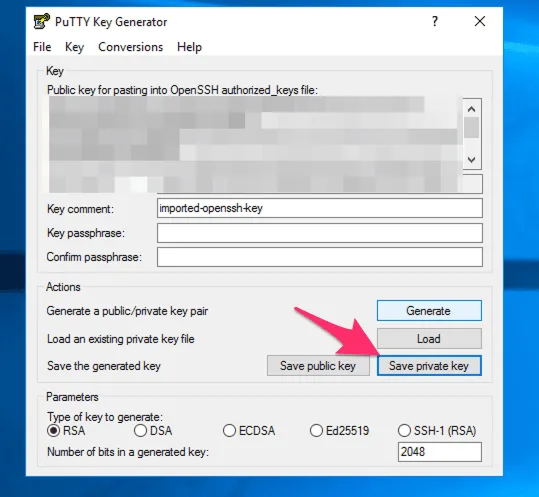 - Ga naar de locatie waar je jouw private key hebt opgeslagen
