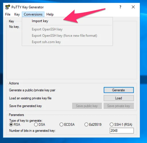 - Klik op ‘Conversions’ en daarna op ‘Import Key’: