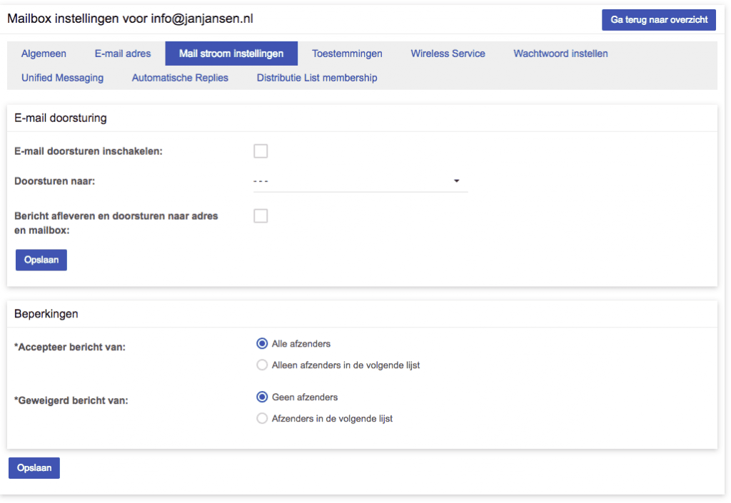 Hosted Exchange mailbox laten doorsturen naar een ander adres