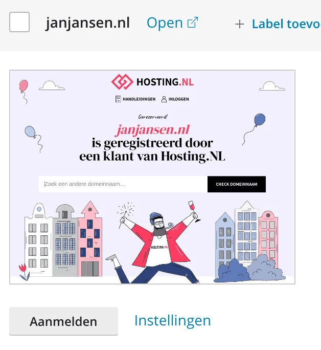 - Klik op de knop ‘Aanmelden’ onder de preview van jouw website: