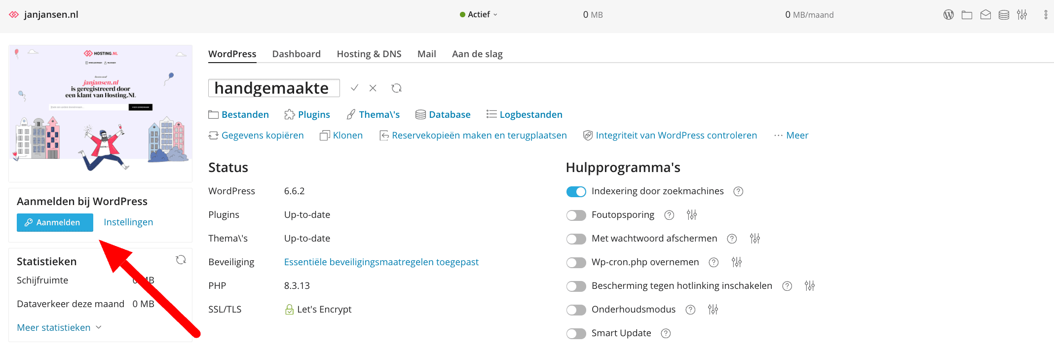 Je kan op twee manieren inloggen: Via Mijn Hosting.NL of direct in WordPress.