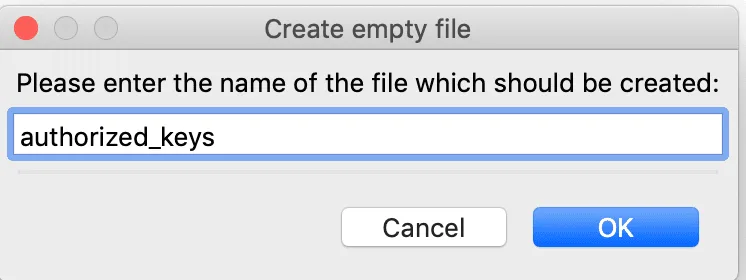- Open de map .ssh en maak hierin een bestand genaamd authorized_keys aan