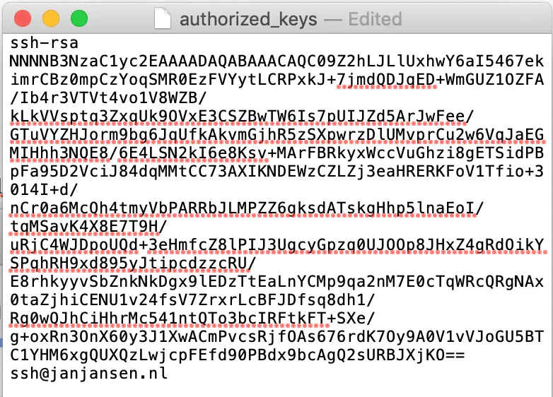 - Open dit bestand op je computer en plak hier je publieke SSH sleutel in