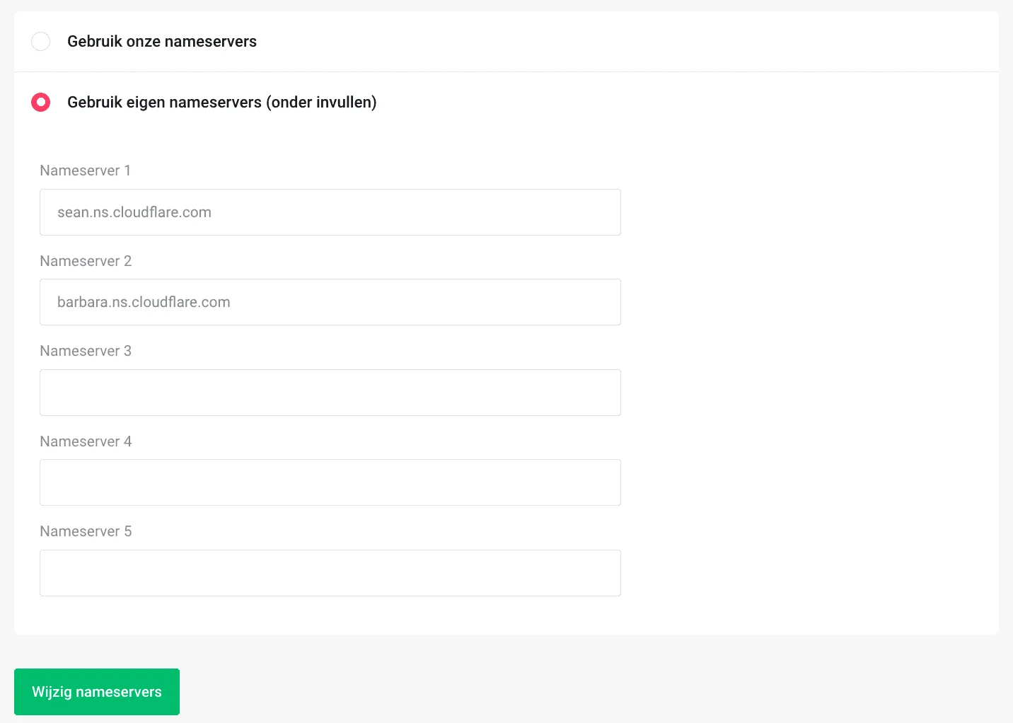 Klik op ‘Wijzig nameservers’ om de wijzigingen op te slaan