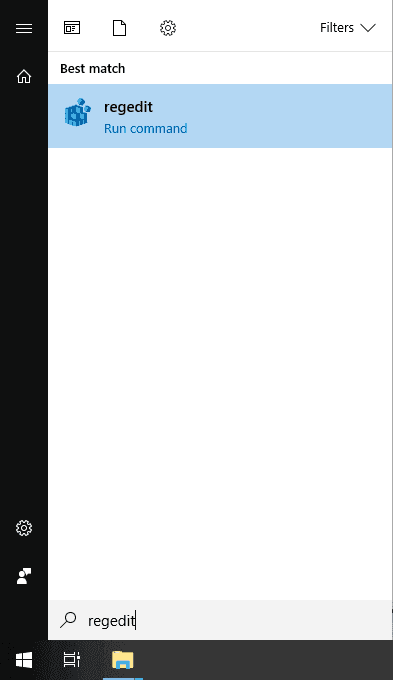 Klik op start en type “regedit”, klik vervolgens op het icoontje van regedit wat vervolgens verschijnt.