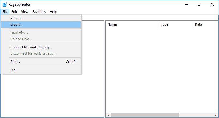 Maak eerst een backup van je register, door aan de linkerkant voor “Computer” te kiezen en dan op bestand klikken en voor “Exporteren” te kiezen. Sla dit bestand op een veilige locatie op.