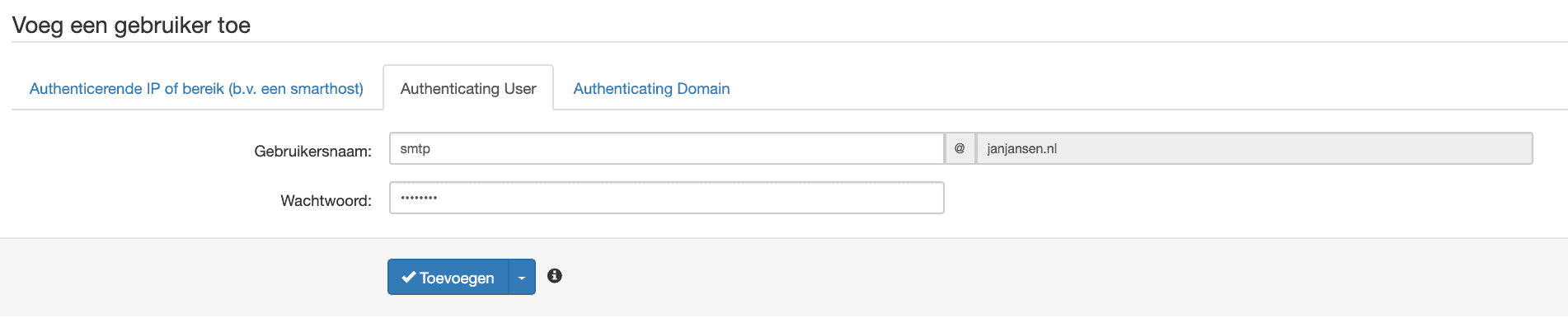 - Kies een gebruikersnaam, bijvoorbeeld smtp, en een wachtwoord