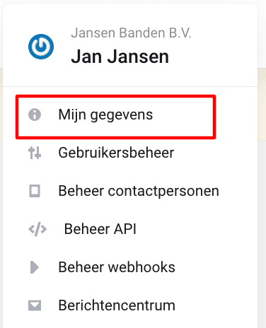 - Klik rechtsboven in het dropdown menu op Mijn gegevens