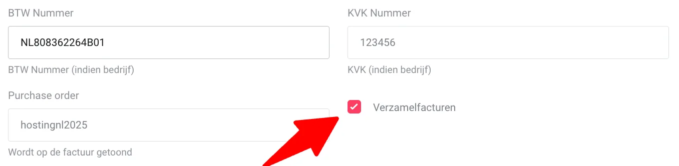 - Op dit moment werkt verzamelfacturen nog niet voor facturen die verzonden worden in verband met abonnementen van je klanten in het Mijn Klanten gedeelte in Mijn Hosting.