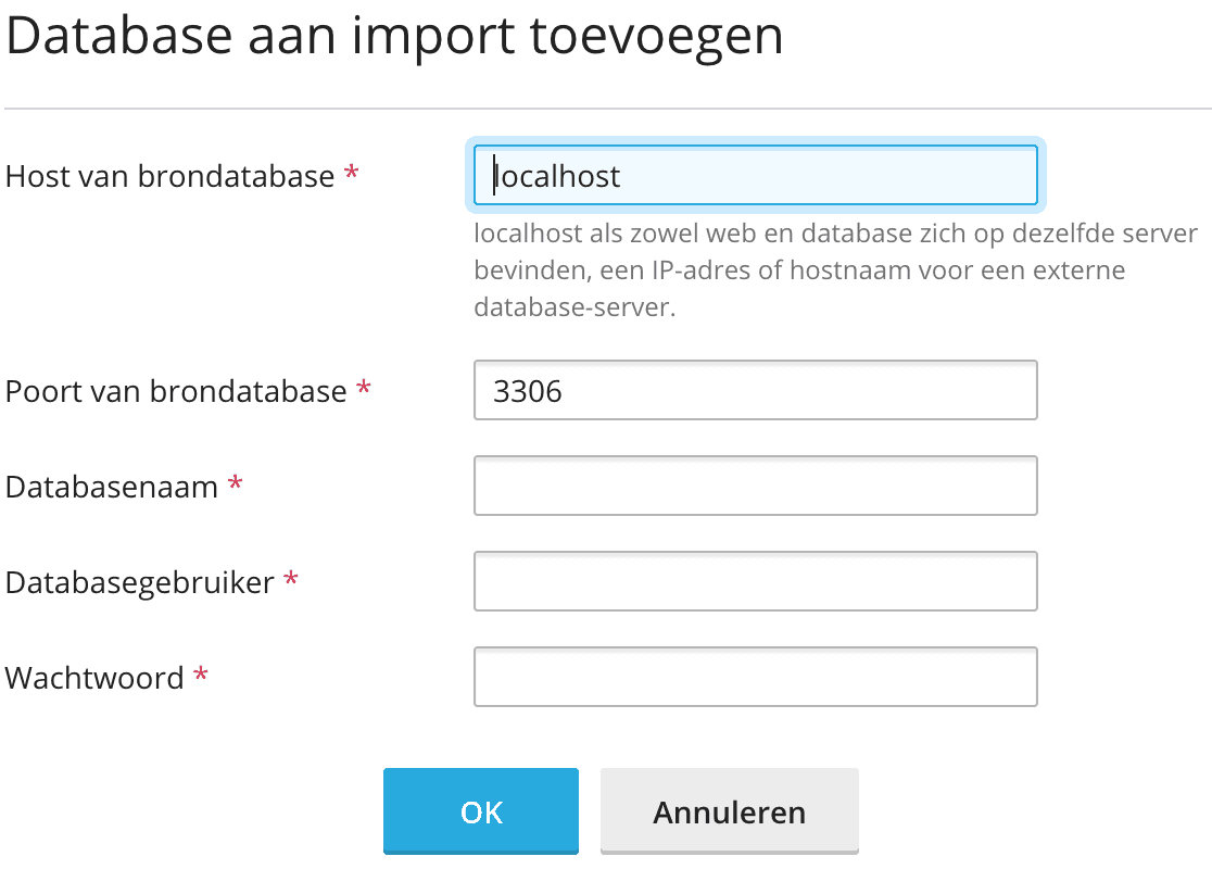 Klik op de knop Een database toevoegen om te importeren en vul daarna de database gegevens in om de database te importeren.