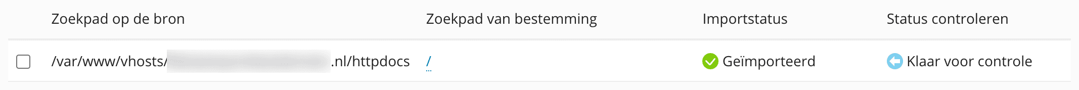 Afhankelijk van de grootte van de website verschijnt na verloop van tijd de melding Geïmporteerd