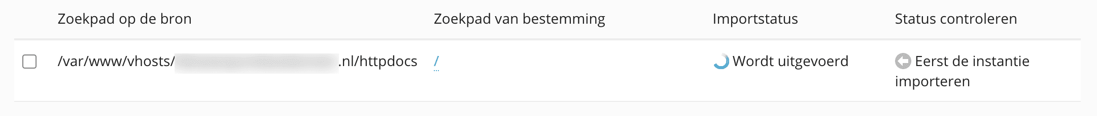 Selecteer de website die je wilt importeren en klik daarna op de knop Importeren. Het proces om de website te importeren wordt nu uitgevoerd.