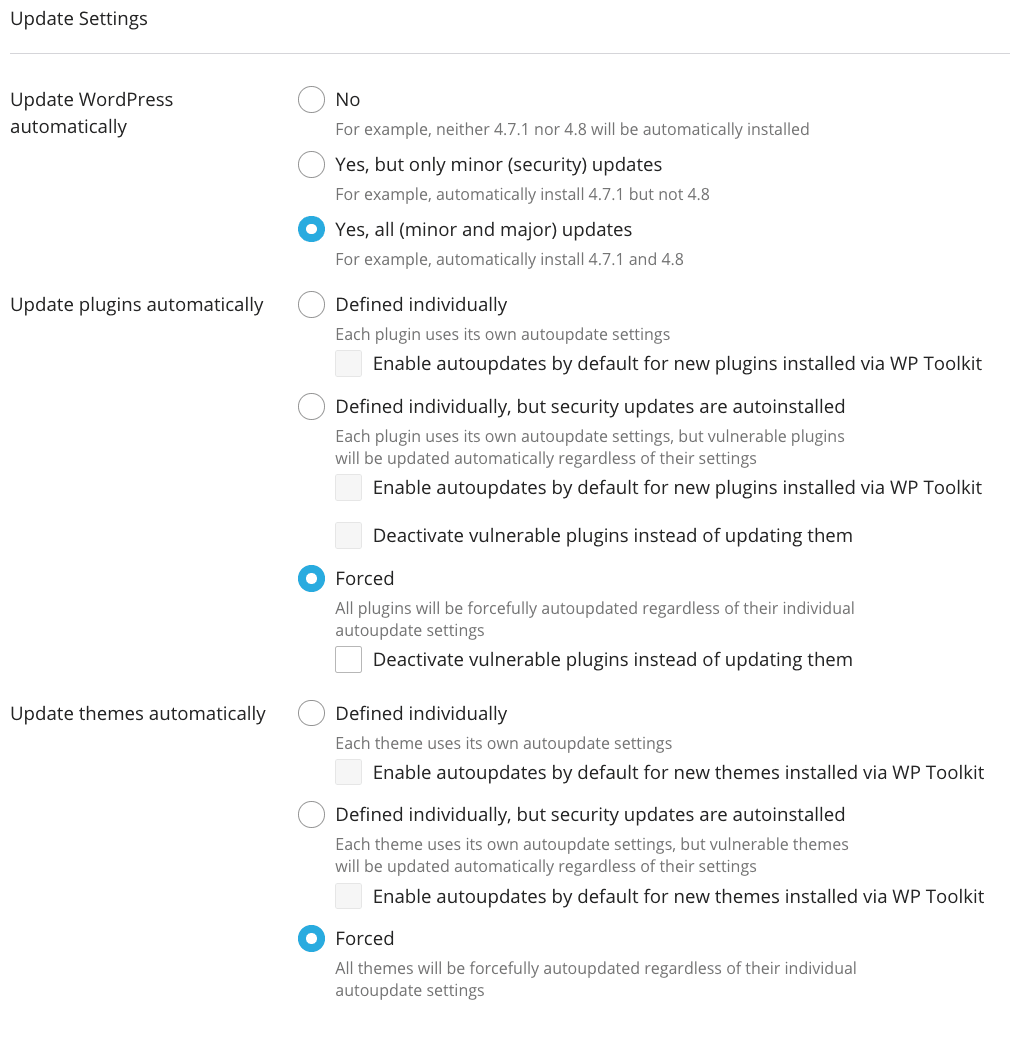 Indien WordPress geïnstalleerd is via Mijn Hosting, hoef jij je geen zorgen te maken over de updates van WordPress. Wij zorgen er voor dat WordPress automatisch bijgewerkt wordt tussen 00:00 en 06:00.